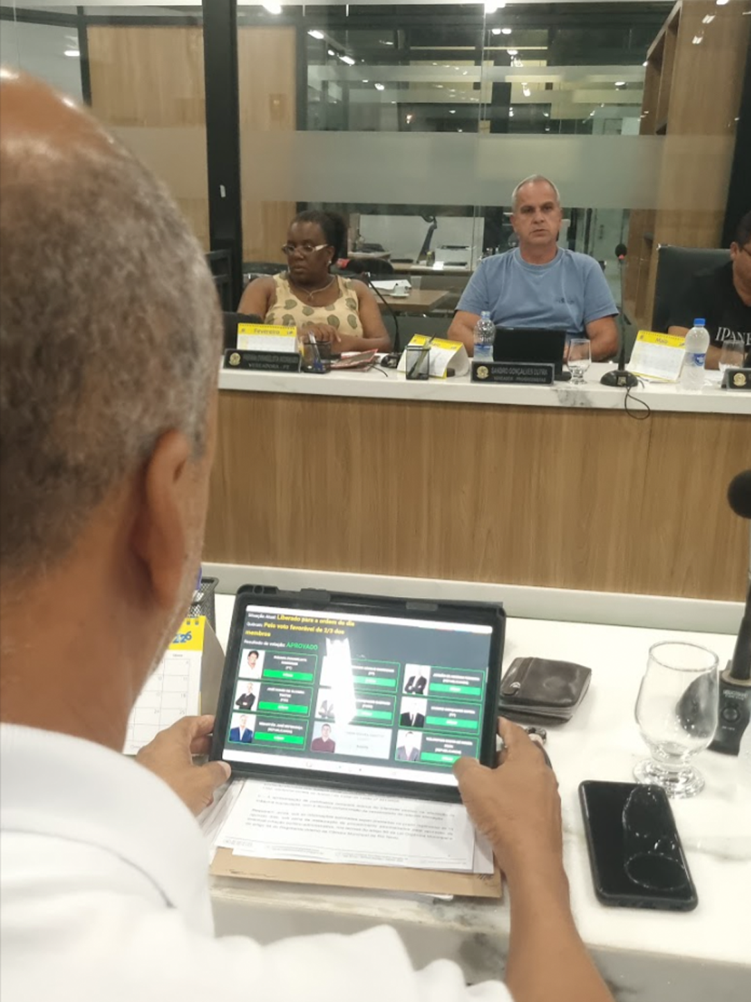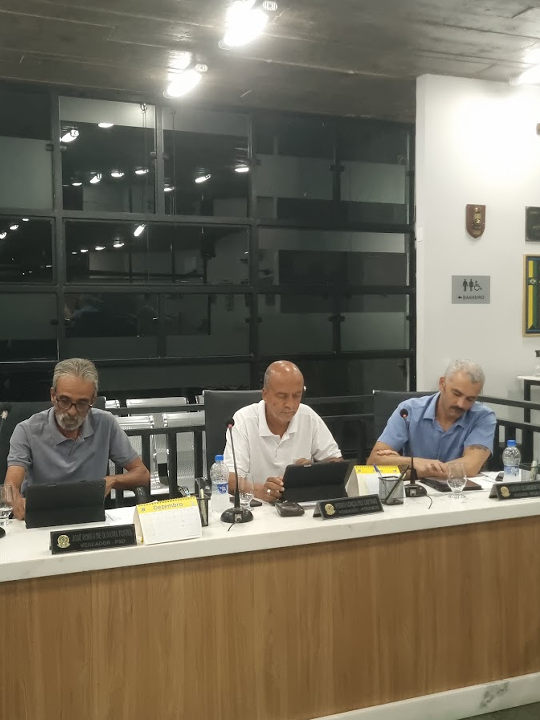 Ainda durante a reunião, foi apreciado em única discussão e votação o Projeto de Decreto Legislativo nº 05/2026, de autoria do vereador Thárik Gouvêa Varotto, que concede a Medalha de Honra ao Mérito Legislativo de Rio Novo a Brenildo Ayres do Carmo.
